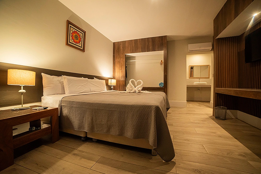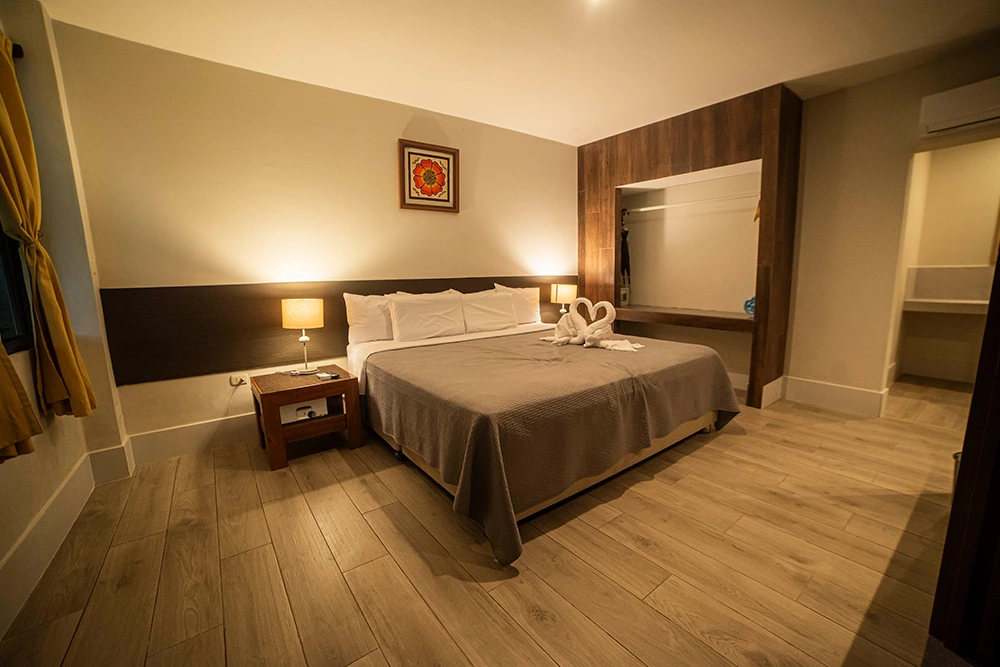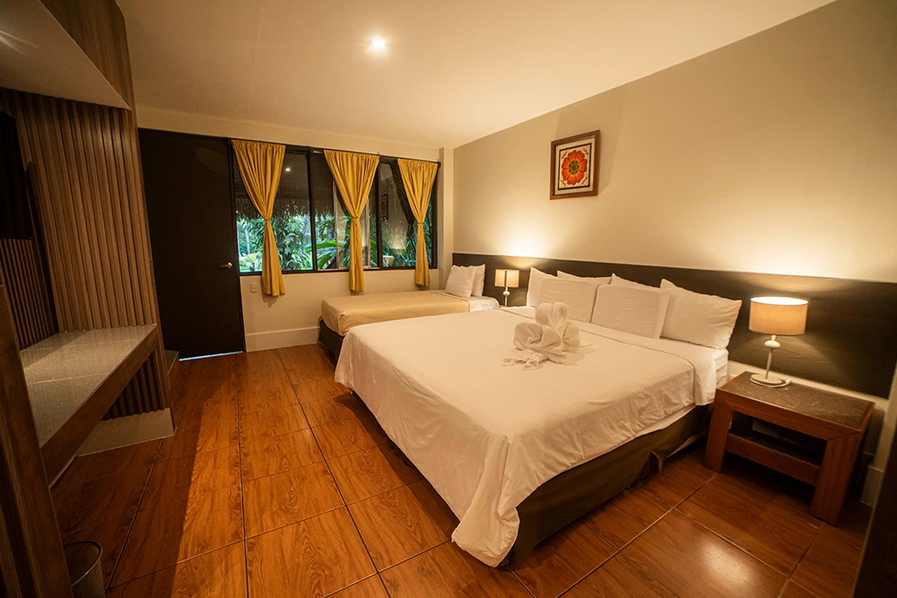 La habitacion SUPERIOR CON TERRAZA es de 25m2, está equipada con una Cama Doble confortable, con sabanas de 100% algodón, aire acondicionado y TV con cable. Están cerca a la piscina, y con vista al jardín; también cuentan con Terraza. Todas las habitaciones tienen baño privado con agua caliente.